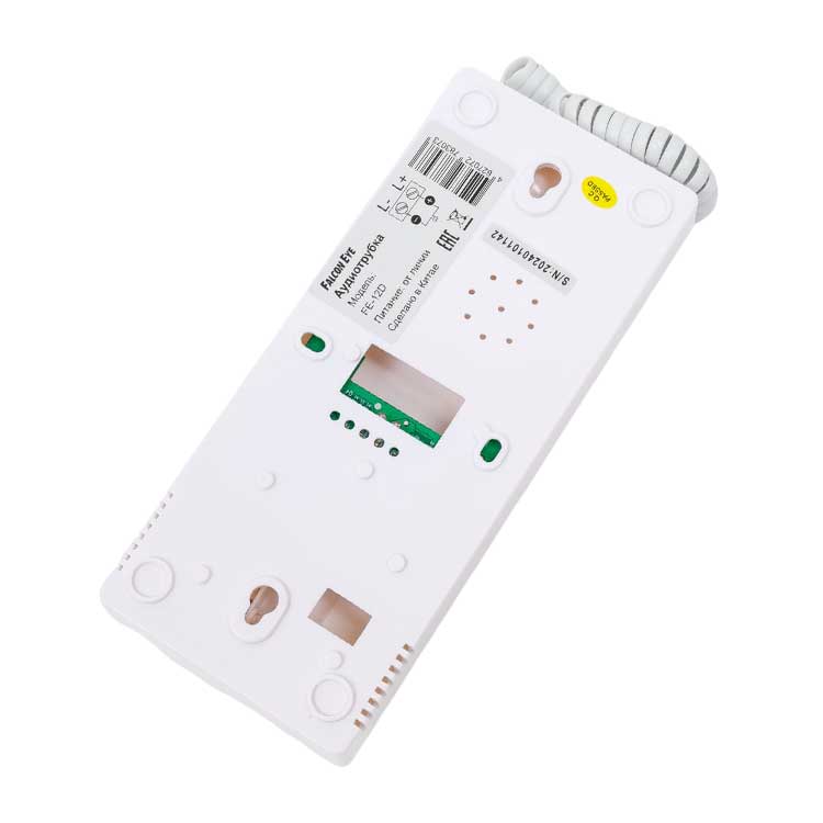 FE-12D цифровая аудио трубка, для подъездного аудио домофона с 2-х проводной системой подключения. Трубка предназначена для использования с домофонами Lascomex, Marshal, Proel, Raikman, Raiman, Filman, Keyman. Номер квартиры, устанавливается внутри трубки с помощью перемычек, двоичным кодом (1,2,4,8,16,32,64,128) путем установки перемычек и получения равной суммы номера квартиры. Данная трубка оснащена: кнопкой полного отключения звука, светодиодом, который оповещает Вас о наличии вызова