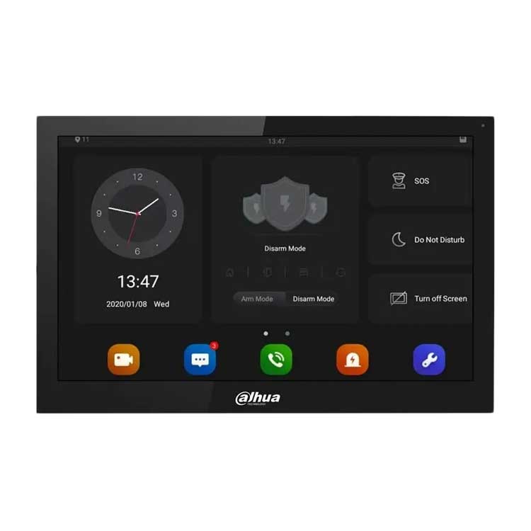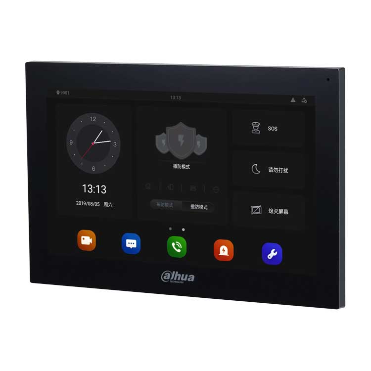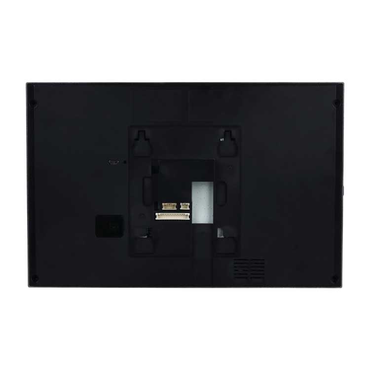 Монитор видеодомофона IP 10-и дюймовый WiFi 2.4ГГц, черный 1024x600 разрешение, ёмкостной сенсорный экран; тревожные входы / выходы 8/1; LAN; поддержка micro-SD до 265Гб; Возможность просмотра IP видеокамер; Питание: DC 12В/PoE; Габаритные размеры: 260 мм × 170 мм × 15 мм; Установка - на стену.