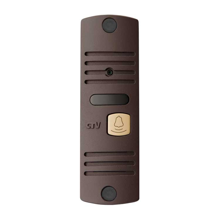 Вызывная панель для видеодомофона, компактный корпус, подсветка кнопки вызова цв. "гавана"/серебро/бронза, коммутация - разъём, монтаж. уголок и козырек в комплекте
