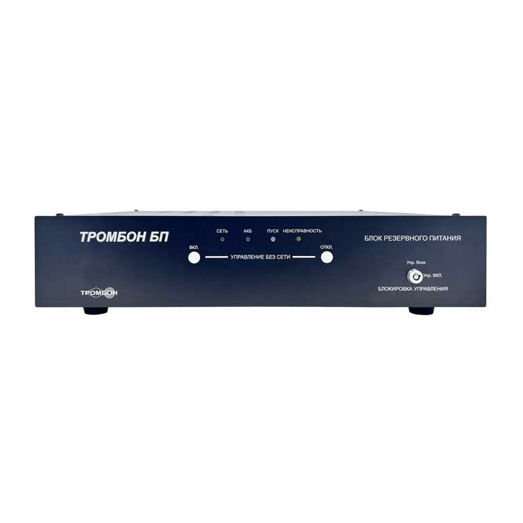 Обновленный блок резервного питания «Тромбон БП-07» обеспечивает бесперебойным низковольтным электропитанием(коммутируемое 24-28В/7А, постоянное 24-28В/2А и постоянное 12В/2А) усилители мощности и другие технические средства, такие как световые эвакуационные знаки безопасности, электромагнитные замки дверей эвакуационных выходов, звуковые излучатели, генераторы сирены и т.д.