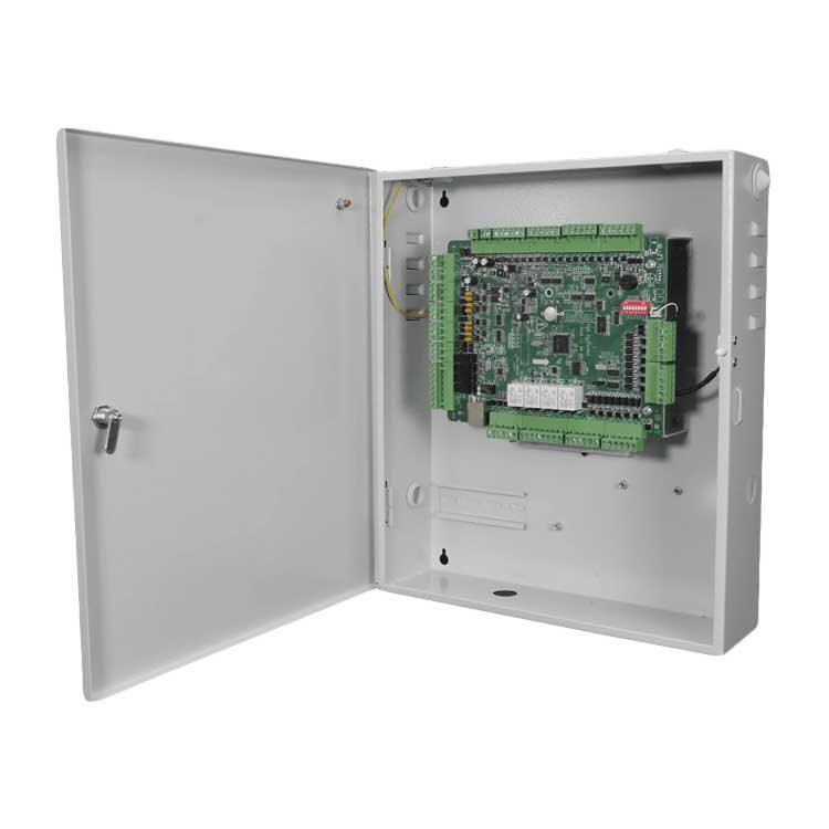 TR-C481B - Сетевой контроллер доступа в металлическом корпусе на 4 двери с возможностью подключения до 8х считывателей. Память - 100000 карт, 300000 событий; - Считыватели карт - 4 wiegand и 8 RS-485; Интерфейс считывателей - Wiegand, RS-485; Датчик двери - 4; Кнопка выхода - 4; Реле замка - 4; Тревожные вход/выход - 4/2; TCP/IP; -20 до +65 °C; DC 12В.