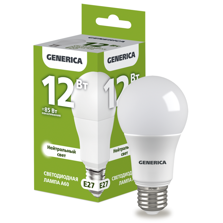 GENERICA LL-A60-12-230-40-E27-G Лампа светод. груша 12Вт E27 4000К A60 230В
